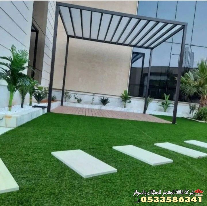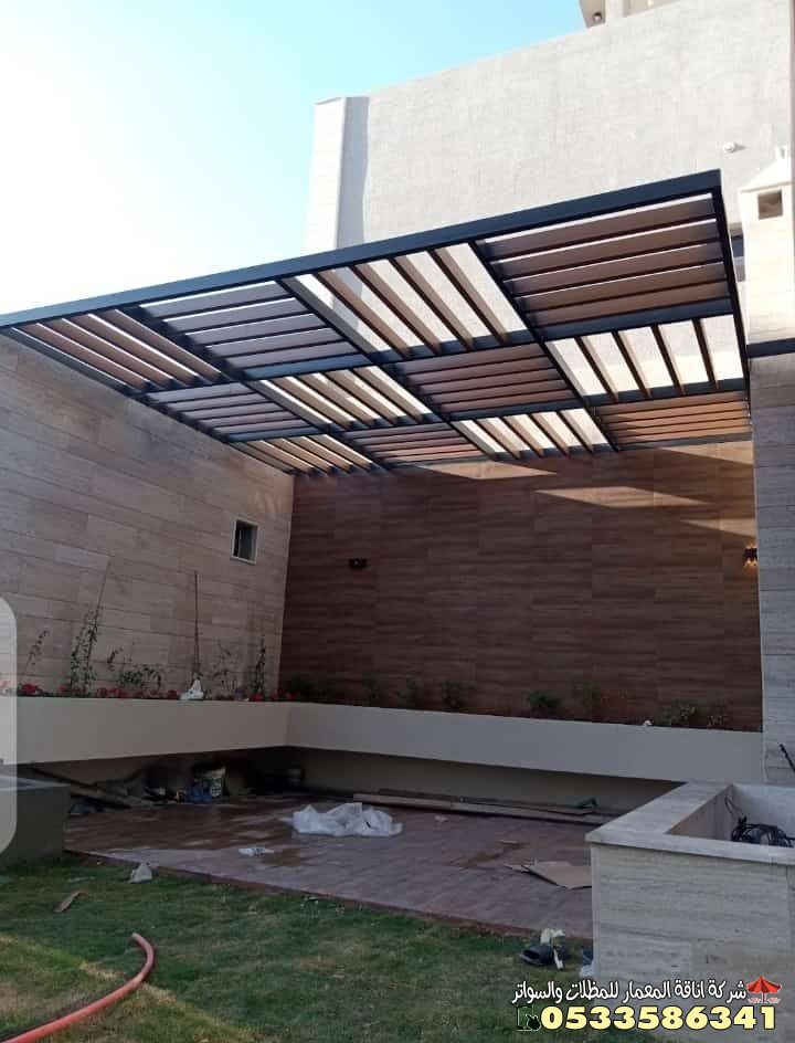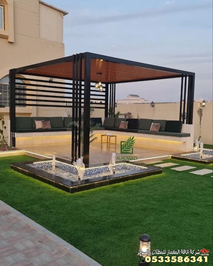 أما إذا كنت تفضل الخيارات الأكثر عملية، فيمكنك اختيار برجولات معدنية للجلسات. هذه البرجولات توفر لك أمانًا إضافيًا ضد عوامل الطقس القاسية، بما في ذلك حرارة الصيف في الرياض. غالبًا ما تصنع البرجولات المعدنية من ألواح الألومنيوم أو الفولاذ المجلفن، مما يجعلها مقاومة للصدأ وسهلة الصيانة.